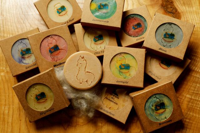 Aus der Faser unserer Tiere produziert. Alle Seifen sind individuelle Naturprodukte mit einer glatten Haptik und einem feinporigen cremigen Schaum. In Deutschland hergestellt. Ohne Palmöl, ohne tierische Fette. Wechselnde Düfte.