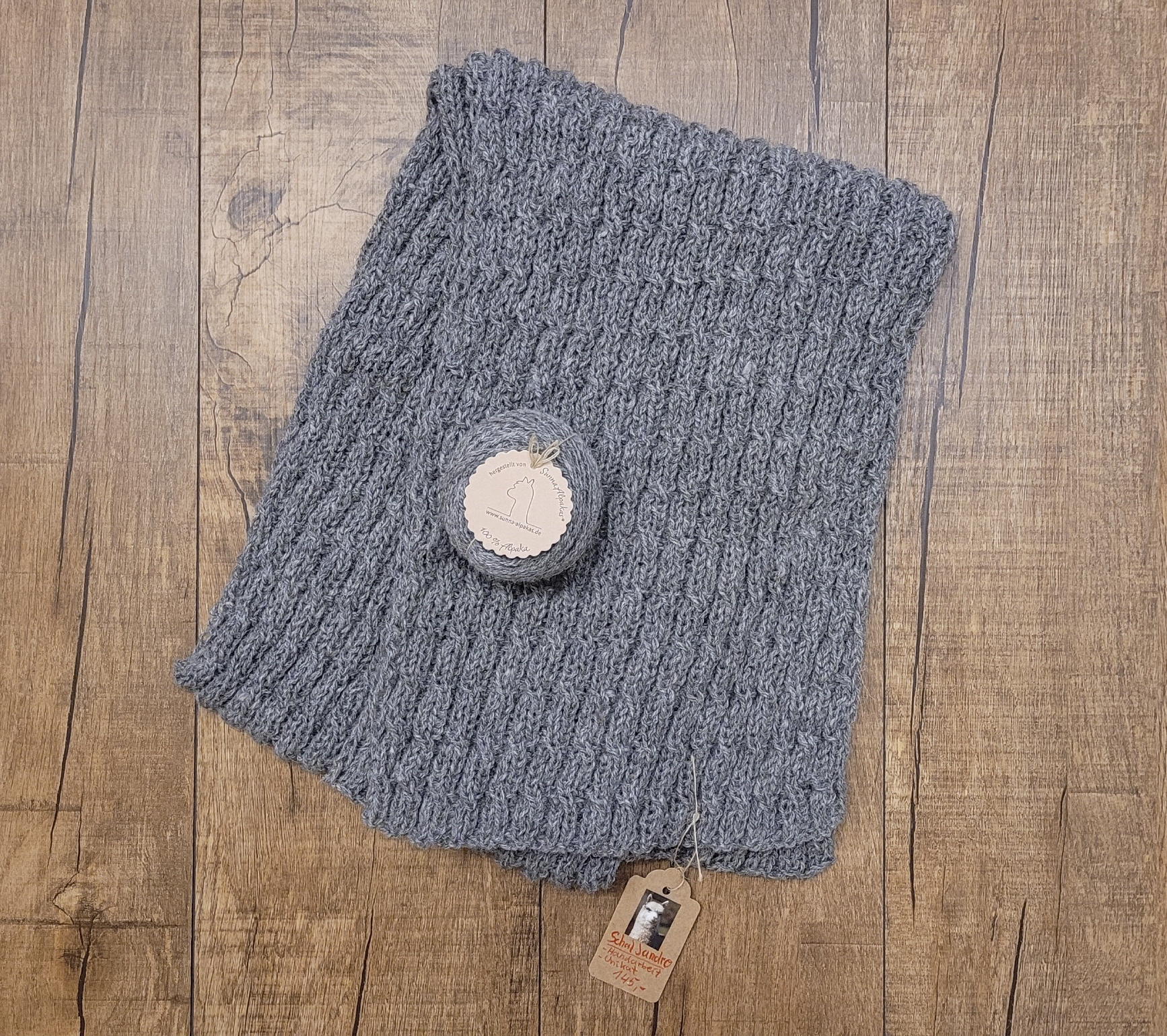 Aus der Faser von Lana und Lima haben wir feines Strickgarn herstellen lassen, welches von einer Strickerin zu individuellen kuscheligen Schals verarbeitet wurde.