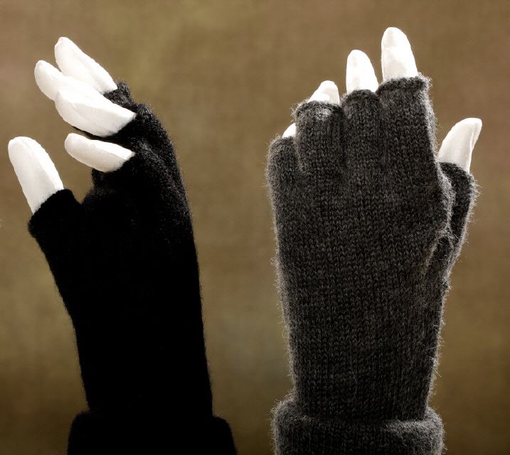 Fingerlose: in schwarz und hellgrau. Auch mit überstülpbarer Kappe in Doppelfunktion. Ab EUR 39,-